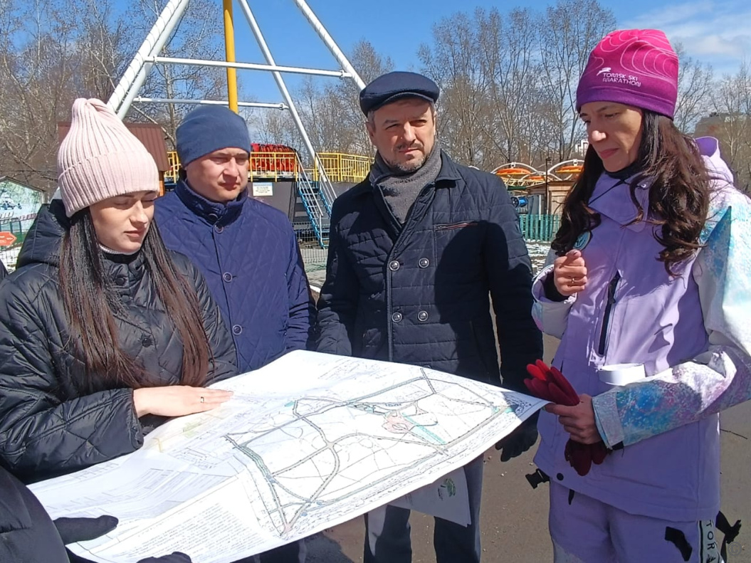 На территории бывшего парка имени Ленина прошла выездная встреча с представителями общественности, ее провел председатель комитета по благоустройству города Барнаула Пётр Воронков, участие также приняли председатель комитета по городскому хозяйству, градостроительству и землепользованию Барнаульской городской Думы Сергей Струченко, разработчик эскизного проекта, член союза архитекторов Российской Федерации Артем Малыгин, профильные специалисты и представители подрядной организации.