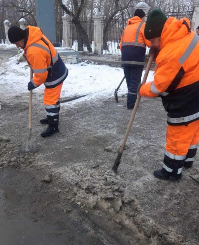 В связи с оттепелью и гололëдными явлениями, бригады МБУ «Автодорстрой» работают во всех районах Барнаула: с помощью спецтехники удаляют наледь и мокрый снег с пешеходных дорожек, посыпают песком наиболее скользкие участки.