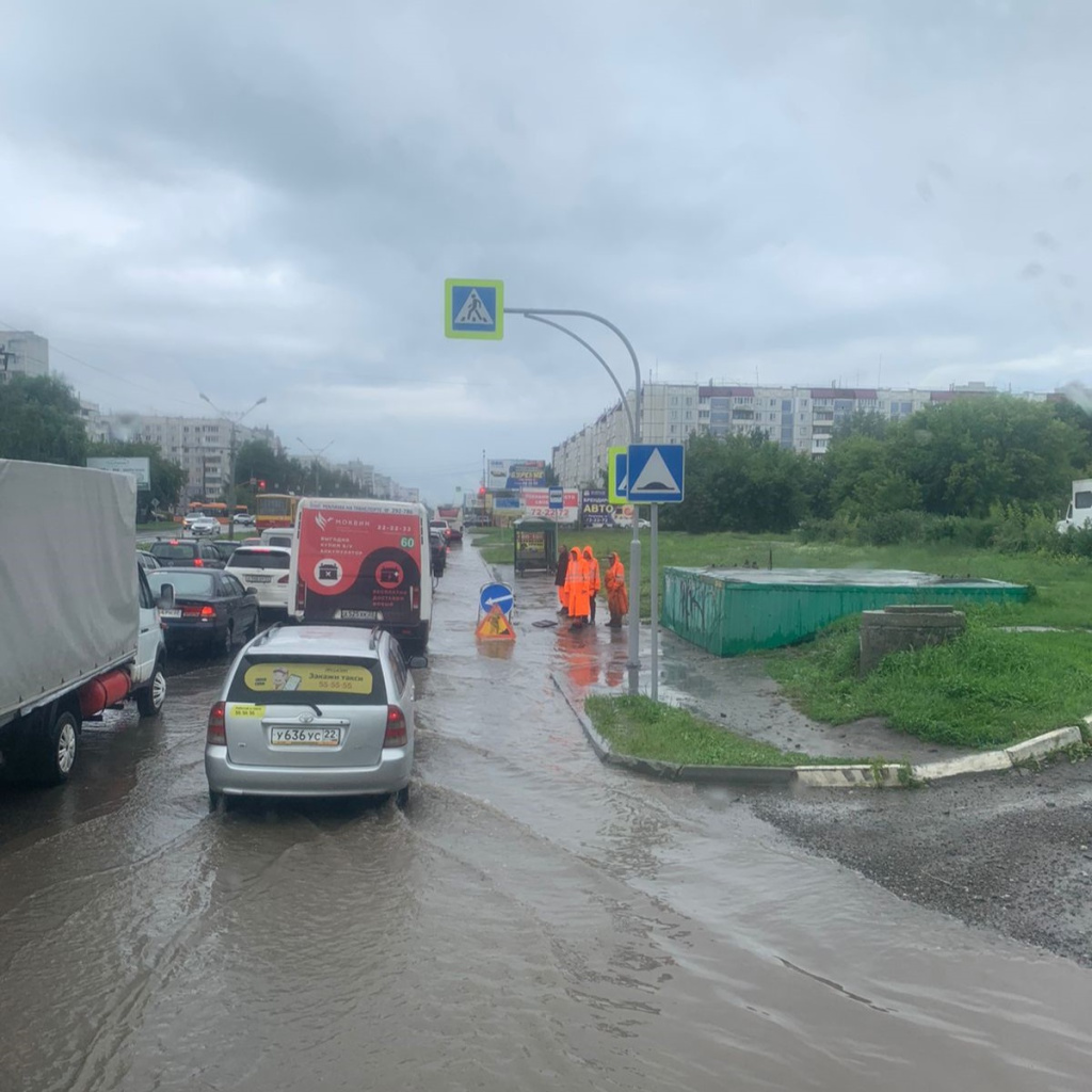 Вода скапливается на пересечении Павловского тракта и улицы Попова, Павловского тракта и улицы Малахова, на проспекте Ленина у магазина «Океан». Дежурные бригады находятся на самых сложных участках и контролируют ситуацию.
