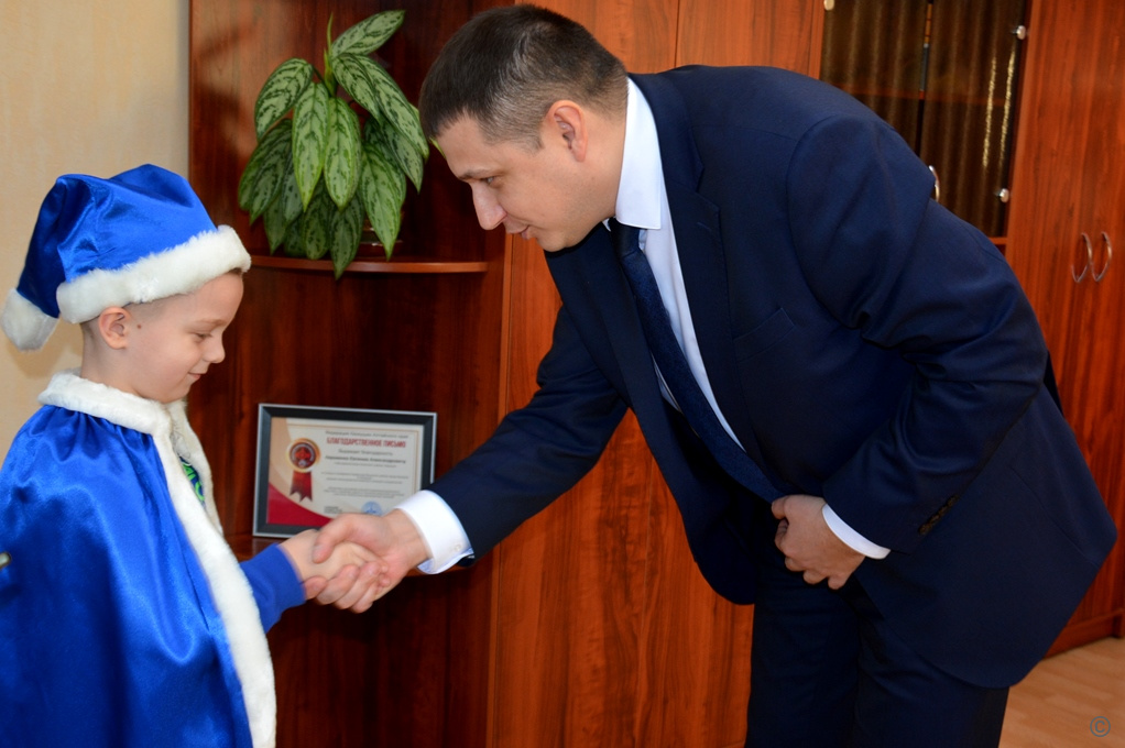 Сегодня Евгений Авраменко пригласил семью Еремеевых в администрацию района, где в теплой душевной обстановке поздравил мальчика и его маму с наступающим Новым годом и Рождеством, пожелал им здоровья, семейного благополучия и вручил Егору снегокат.