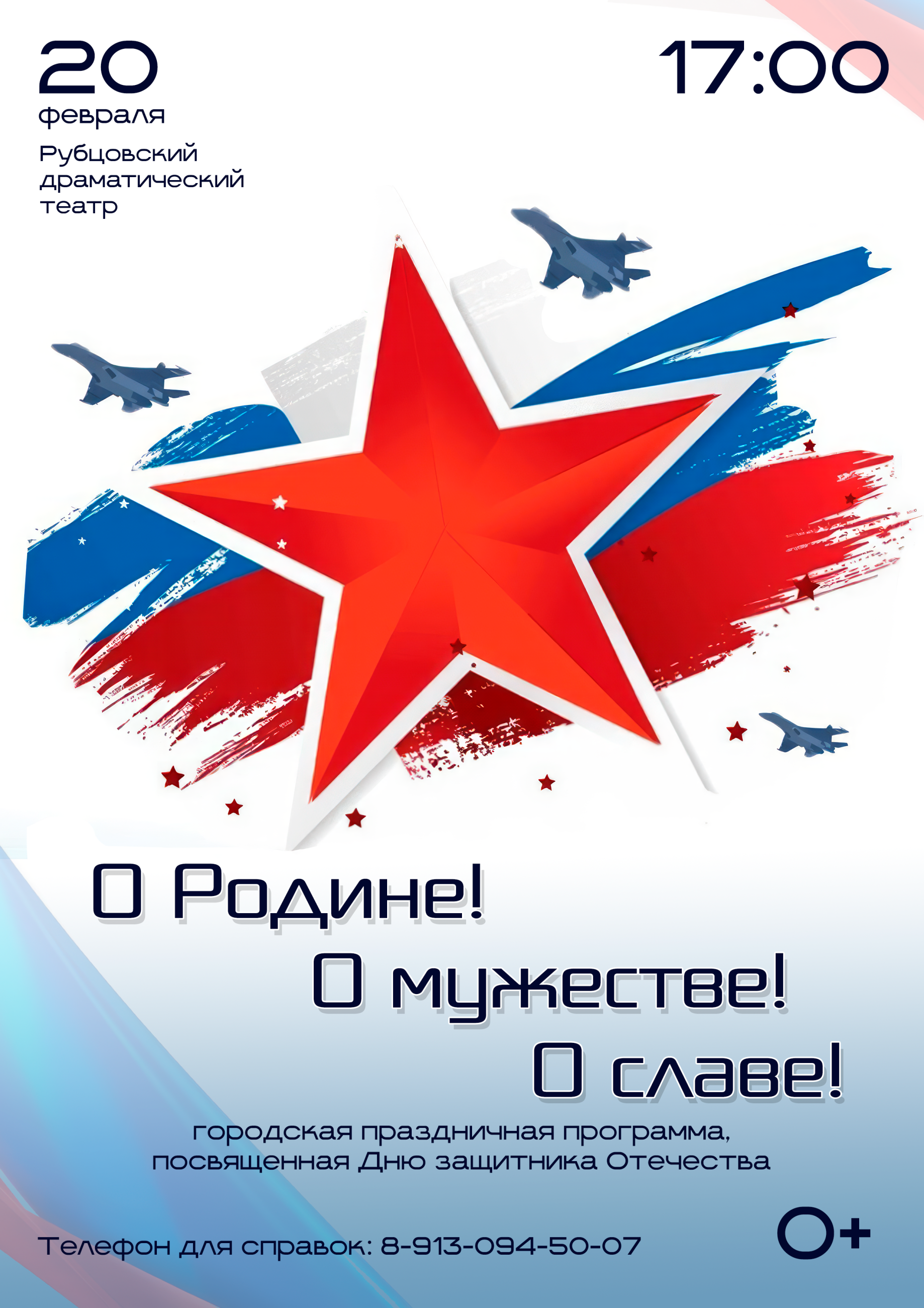 20 февраля в 17:00 в Рубцовском драматическом театре состоится городская праздничная концертная программа «О Родине!