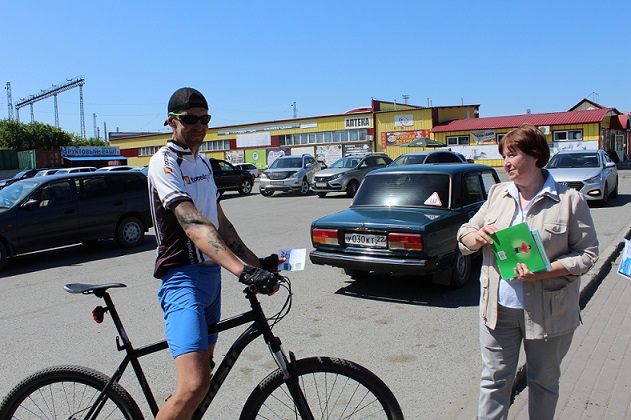Привлечь внимание взрослых участников дорожного движения к вопросам обеспечения безопасности детей в период летних каникул, а также напомнить юным велосипедистам и их родителям основные правила безопасного поведения на дороге и около проезжей части. Сотрудники Госавтоинспекции по г. Новоалтайску совместно с сотрудниками городской центральной модельной библиотеки вышли на улицу города, чтобы раздать участникам дорожного движения памятки и провести профилактическую беседу. Акция проведена на ул. Октябрьская в районе пешеходного перехода.