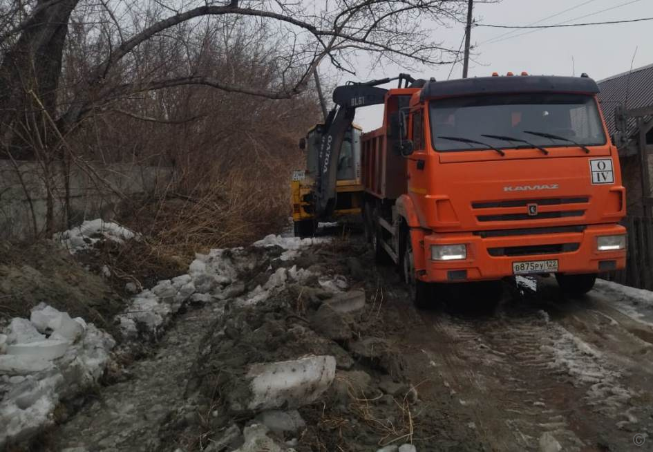 В рамках подготовительных противопаводковых мероприятий в Октябрьском районе подрядная организация продолжила очищать от снега и льда, а также углублять водоотводной канал от строения №230а по улице Красноярской, далее по улице Заозерной и до выхода в пойму Оби.