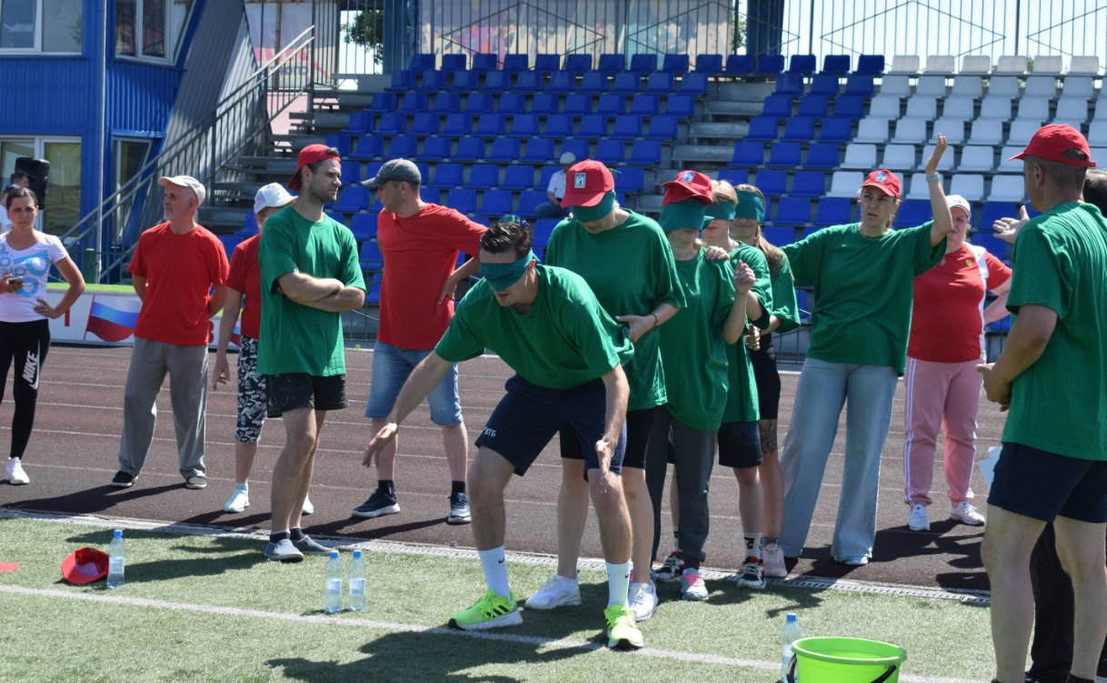 Общественники соревновались в различных эстафетах и состязаниях: гигантские лыжи, боулинг, гусеница, футбольный дартс, корнхол и другие.