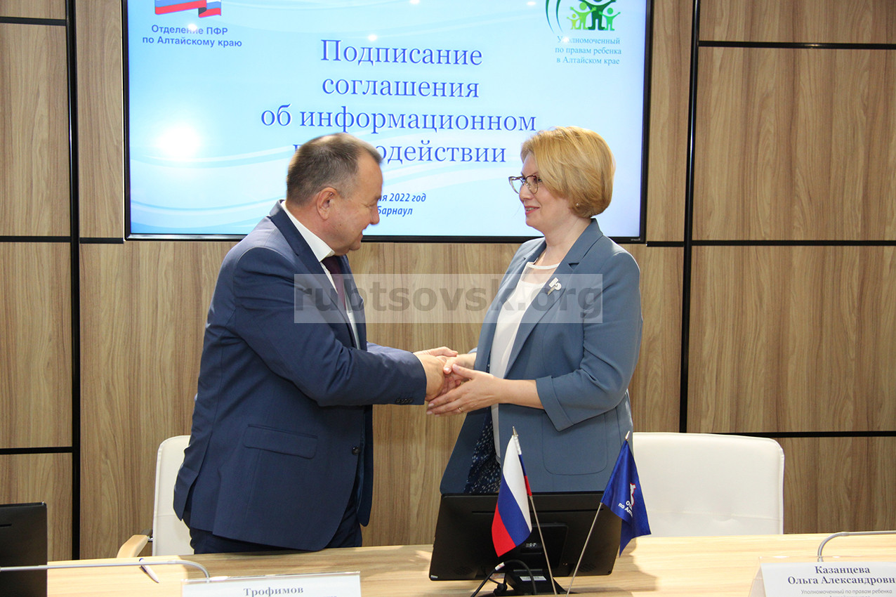 В День защиты детей управляющий региональным Отделением Пенсионного фонда России Борис Трофимов и уполномоченный по правам ребенка в Алтайском крае Ольга Казанцева провели рабочую встречу,