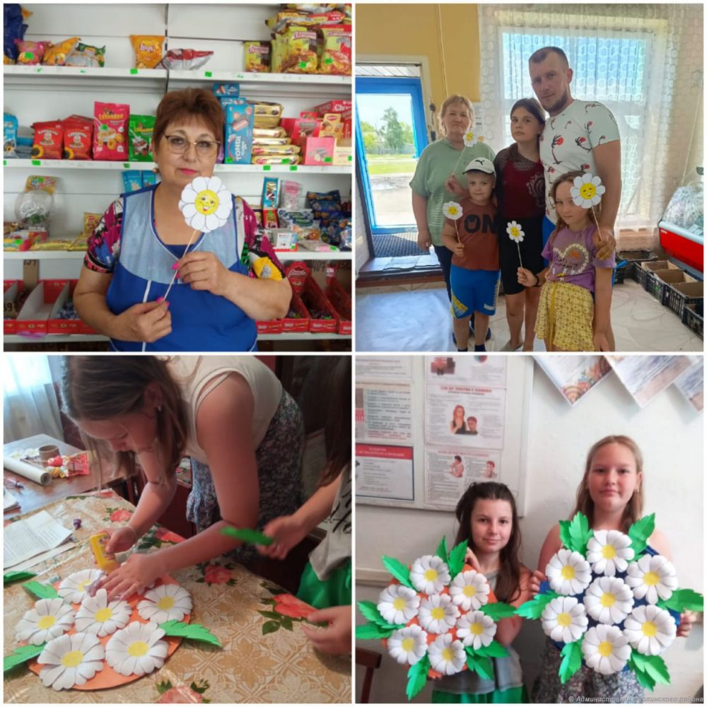 А 8 июля для жителей села провели акцию «Веселая ромашка». Так как цветок ромашка является символом праздника, участники клуба «Умелые ручки» сделали поделки-ромашки, которые дарили жителям на улицах села.