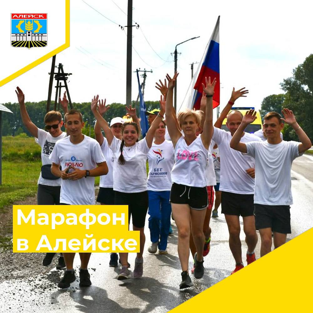 Сегодня Алейск теплым приемом встречает участников марафона Сибирской ветки эстафеты Бег Гармонии.