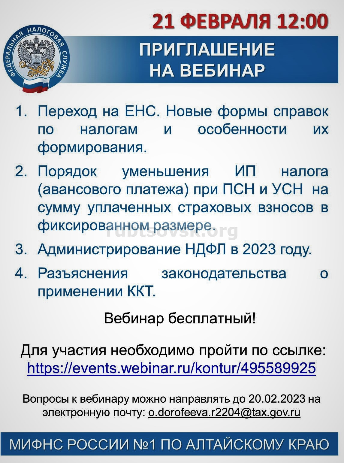 Межрайонная ИФНС России № 1 по Алтайскому краю приглашает налогоплательщиков принять участие в онлайн-семинаре по следующим темам: