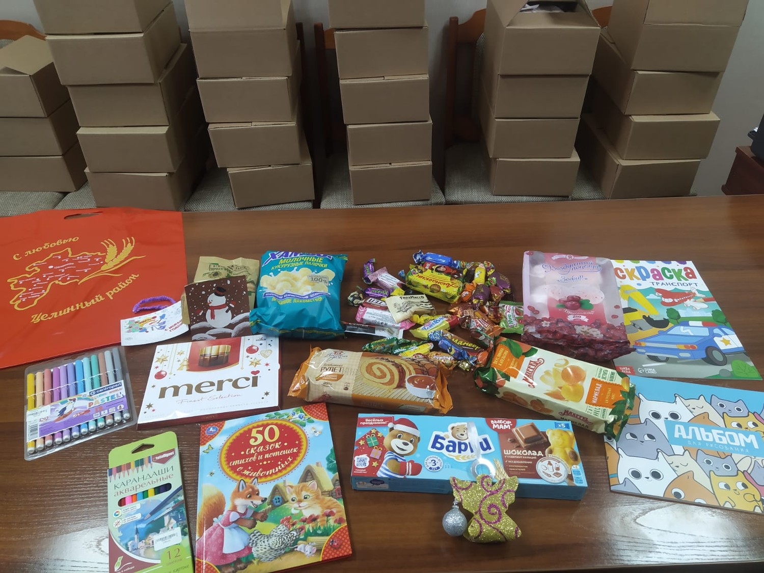 В рамках краевой гуманитарной акции по сбору подарков детям подшефного Славяносербского района под названием: "Новый год стучится в дом, к детям - с радостью, добром!". Администрацией Целинного района подготовлено 30 подарков.