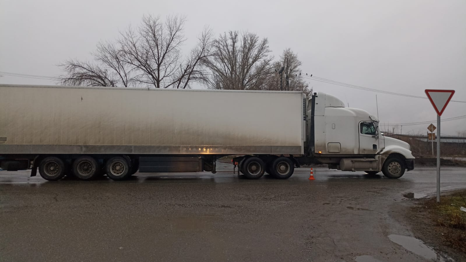 14 ноября 2023 года около 08 часов 00 минут на районе дома № 2 по Угловскому тракту в городе Рубцовске, водитель управляя автомобилем Фрейтлайнер Колумбия белого цвета, буксируя полуприцеп Пактон,