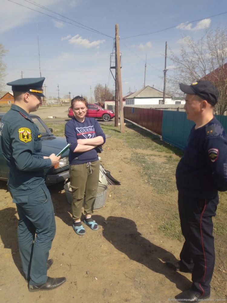 Участковые уполномоченные полиции пункта полиции по Бурлинскому району во взаимодействии с сотрудником МЧС дознавателем ОД ТО НД и ПР №5 УНД и ПР Главного Управления МЧС России по Алтайскому краю с лейтенантом внутренней службы В.С. Булаевым провели профилактические и рейдовые мероприятия по соблюдению противопожарной безопасности.