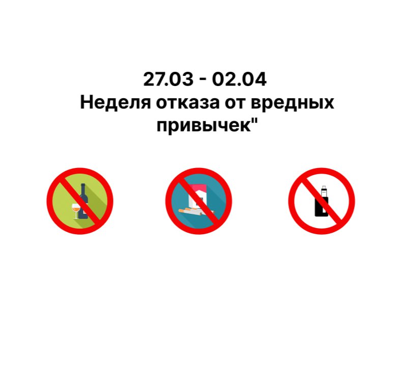 С 27 марта по 2 апреля проходит "Неделя отказа от вредных привычек"