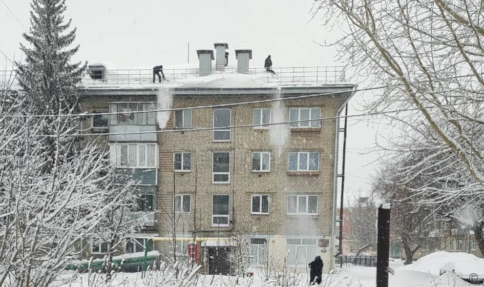Управляющие компании продолжают очищать кровли и придомовые территории Октябрьского района от снега и наледи.