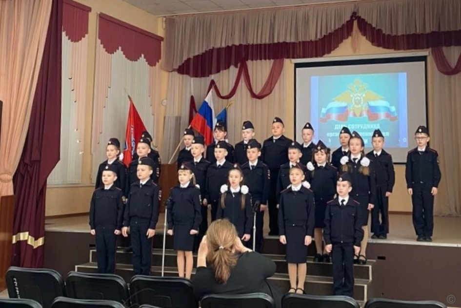 В честь Дня сотрудников органов внутренних дел Российской Федерации в барнаульской школе №53 обучающиеся правоохранительных классов начальной школы приняли участие в конкурсе песни правоохранительной направленности.