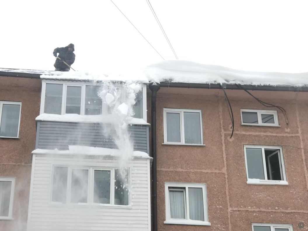 Управляющие компании продолжают очищать кровли и придомовые территории Октябрьского района от снега и наледи