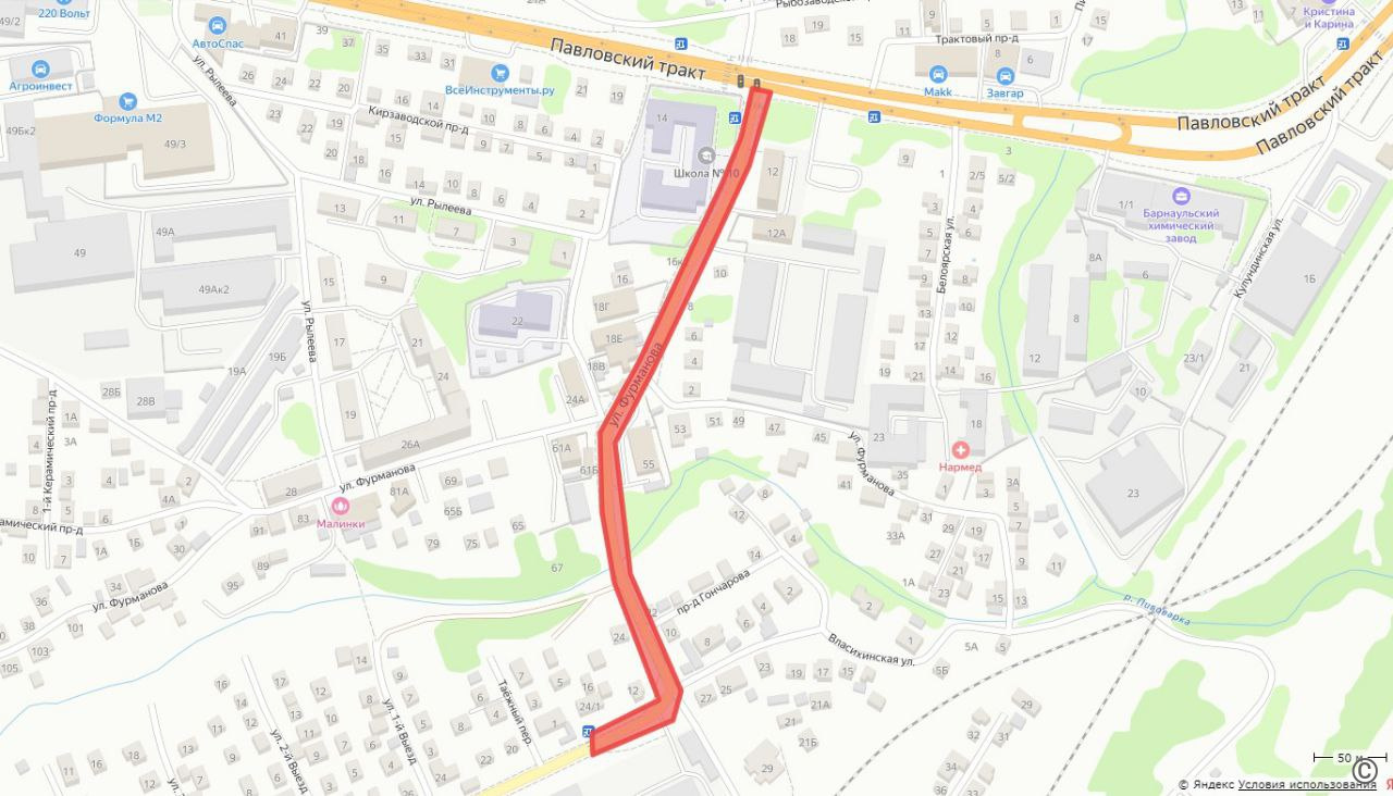 Для проведения работ на ремонтируемом участке автомобильной дороги по ул.Фурманова в рамках национального проекта «Безопасные качественные дороги» с 08.00 до 14.00 час. 07.07.2024 будет ограничено движение транспорта по ул.Фурманова, от Павловского тракта до дома №24/1 по ул.Власихинской.