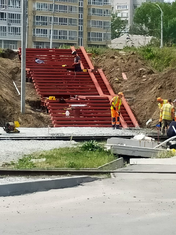 Сегодня, 19 мая, был обустроен лестничный сход тротуара.