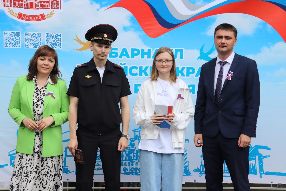 11 подростков сегодня получили паспорта. Документы вручили Депутат Барнаульской городской Думы Марина Понкрашева, первый заместитель главы администрации Железнодорожного района Сергей Ященко, заместитель начальника Отдела по вопросам миграции Валерий Зайцев.