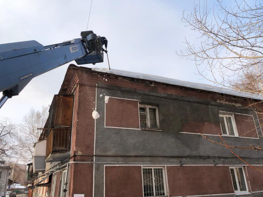 В Ленинском районе продолжаются работы по очистке от снега и наледи кровель аварийных домов, тротуаров и дворовых территорий