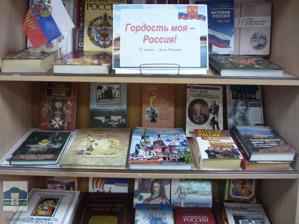 12 июня наша страна отмечает государственный праздник - День России. В этот день мы говорим с гордостью о нашей Великой Родине! Этот праздник-символ национального единения и общей ответственности за настоящее и будущее нашей Родины! В связи с этим знаменательным событием с 10 по 25 июня 2022 года в читальном зале Белокуринской городской библиотеки проходит книжно-информационная выставка «Гордость моя – Россия!». Выставка состоит из двух разделов. Первый раздел расскажет посетителям о красоте родного Алтайского края, о жизни и труде наших земляков. Читатели узнают много интересного и познавательного о нашем родном городе Белокурихе, побывают на знаменитых улицах города. Также можно узнать о людях, которые своими трудовыми и ратными достижениями и подвигами прославили нашу малую родину – ведь это земля наших предков. Здесь живут самые близкие и родные нам люди. Во втором разделе выставки гости «окунутся» через книги в прошлое и будущее Родины. В экспозиции представлены книги, которые познакомят не только с уникальными местами России: реками, горами, озерами, пещерами, парками, заповедниками, но и с красивыми городами, памятниками архитектуры. Издания расскажут о многочисленных народах, познакомят с народными промыслами нашей необъятной страны, а также с историей становления нашей необъятной Родины. Малая родина – самое дорогое место на земле! Здесь самая красивая природа, самые красивые и добрые люди. Здесь всё своё, такое родное и любимое. Где бы ни был человек, в какой уголок земли он бы не попал, он всегда будет вспоминать свой родной уголок нашей необъятной России. Приходите в библиотеку. Книги ждут Вас!