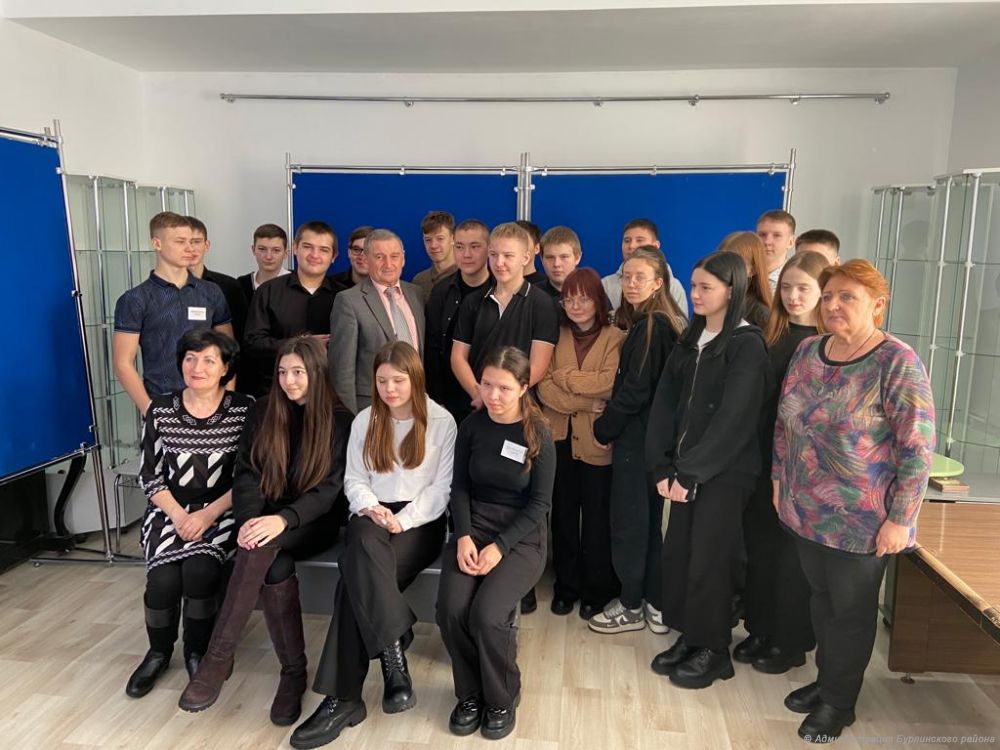 В рамках празднования 80-летия Бурлинского района 22 января в районном краеведческом музее для учащихся Бурлинской средней школы состоялся музейно-исторический урок, который провёл заслуженный работник органов государственного муниципального управления Алтайского края, глава Бурлинского района Сергей Давыденко .