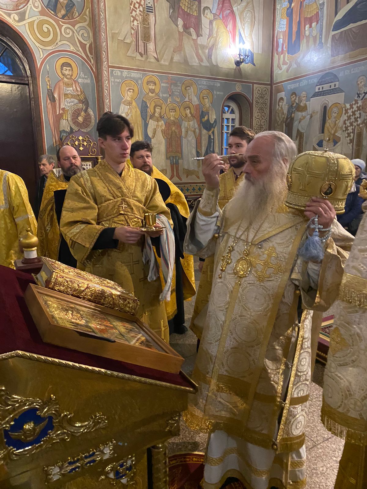 22 октября 2022 года в Неделю 19-ю по Пятидесятнице. Память святых отцов VII Вселенского Собора (787) митрополит Барнаульский и Алтайский Сергий совершил Воскресное Всенощное бдение в храме в честь Св.