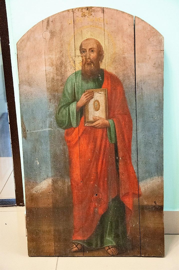 «Изучению Петропавловского собора краевой столицы было посвящено значительное количество исследований, в которых, в том числе, описывалась история его строительства, архитектурные особенности и т.д. Однако до сих пор мало внимания в этих работах уделялось внутреннему интерьеру собора, тому художественному наследию, тем иконам, что были там представлены, — уточняет руководитель исследовательской группы, профессор кафедры культурологии и дизайна ИГН АлтГУ, доктор искусствоведения, протоиерей Георгий Крейдун . — В настоящее время в музее истории православия на Алтае хранятся две иконы, которые изначально принадлежали Петропавловскому собору Барнаула – это иконы апостолов Петра и Павла. Они написаны в одинаковом стиле провинциального примитивизма с элементами академического письма XIX века, колорит и характер образов идентичны между собой, выполнены на арочных досках и являются частью большого иконостаса. Фон обеих икон трехуровневый: светло-коричневый позем с изображением на заднем плане возвышенностей, голубой фон центральной части икон при переходе в верхнюю часть меняется на нежно-розовый с желтыми всполохами, исходящими от нимбов святых апостолов. Апостол Петр изображен традиционно со связкой ключей, он облачен в тунику салатного цвета и плащ цвета охры, на ногах святого — сандалии. Правая рука Петра поднята на уровне груди — это жест, призывающий верующих во время богослужения к чтению молитвы «Отче Наш». В руках апостола Павла Евангелие – символ проповеди Христовой. Павел облачен в тунику темно-зеленого цвета и алый плащ, на его ногах также сандалии. Фигуры апостолов обращены друг к другу, что подтверждает принадлежность данных икон к единому иконостасу.