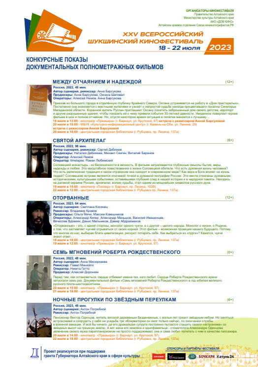 Напомним: конкурс документального кино проводится при поддержке гранта Губернатора Алтайского края в сфере культуры.
