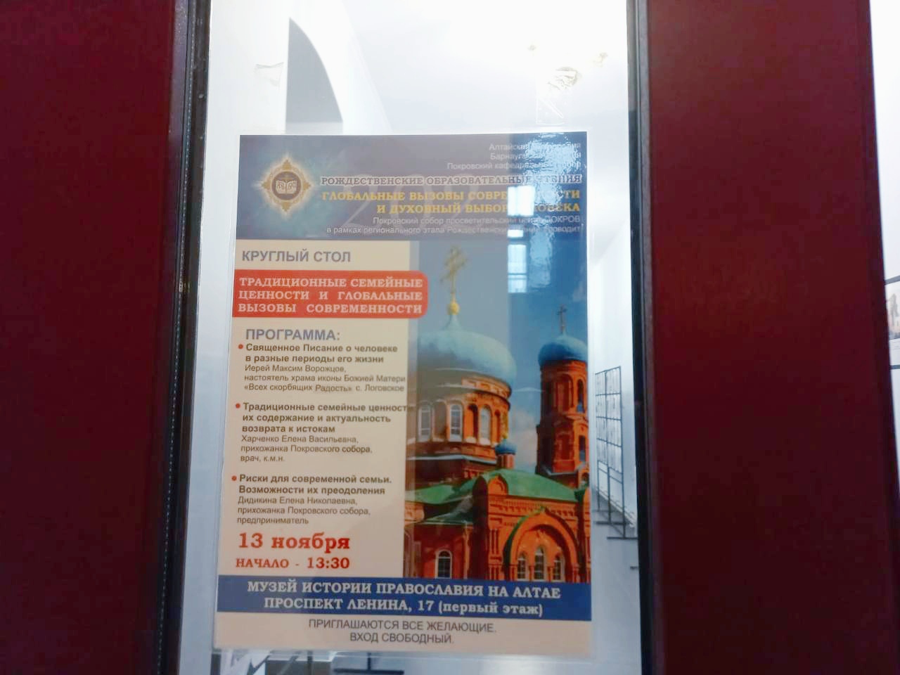 13 ноября в Музее истории Православия на Алтае (пр. Ленина, 17) в рамках регионального этапа Рождественских образовательных ценностей состоялся круглый стол на тему «Традиционные семейные ценности и глобальные вызовы современности»,