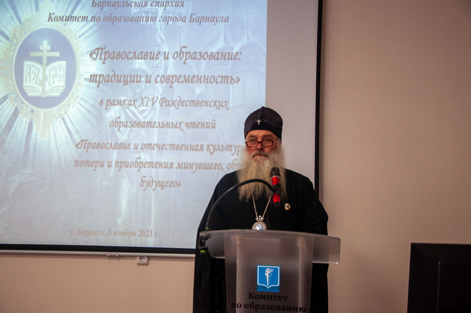 Уважаемые педагоги, участники конференции «Православие и образование. Традиции и современность»! Сегодняшнее наше мероприятие проходит в рамках Рождественских чтений Барнаульской епархии Алтайской митрополии. В первую очередь мне бы хотелось поблагодарить наших соработников в организации и проведении этого мероприятия – Министерство образования и науки Алтайского края, Городского комитета по образованию г. Бараула, Городской психолого-педагогический центр «Потенциал», где мы сегодня собрались. И это стало уже для нас доброй традицией.
