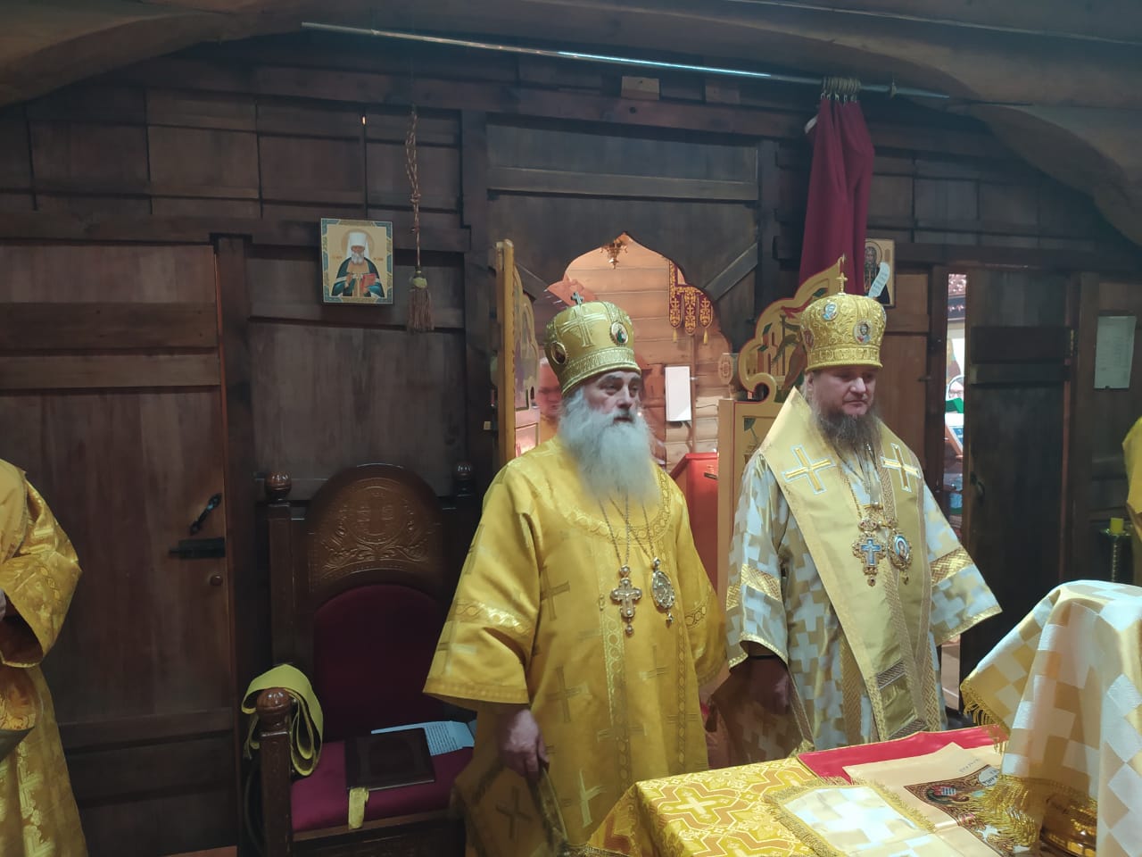 Им сослужили ключарь кафедрального храма иерей Сергий Коньков, иеромонах Серафим (Бубнов), иеромонах Алексей (Михайлов), диакон Алексей Эргарт, иеродиакон Василий (Вдовин), диакон Константин Гавло.