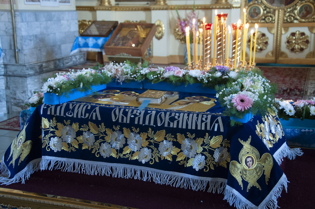 Уставное богослужение с чином погребения Плащаницы Пресвятой Богородицы в Покровском кафедральном соборе совершили 28 августа митрополит Барнаульский и Алтайский Сергий и архиепископ Горноалтайский и Чемальский Каллистрат.