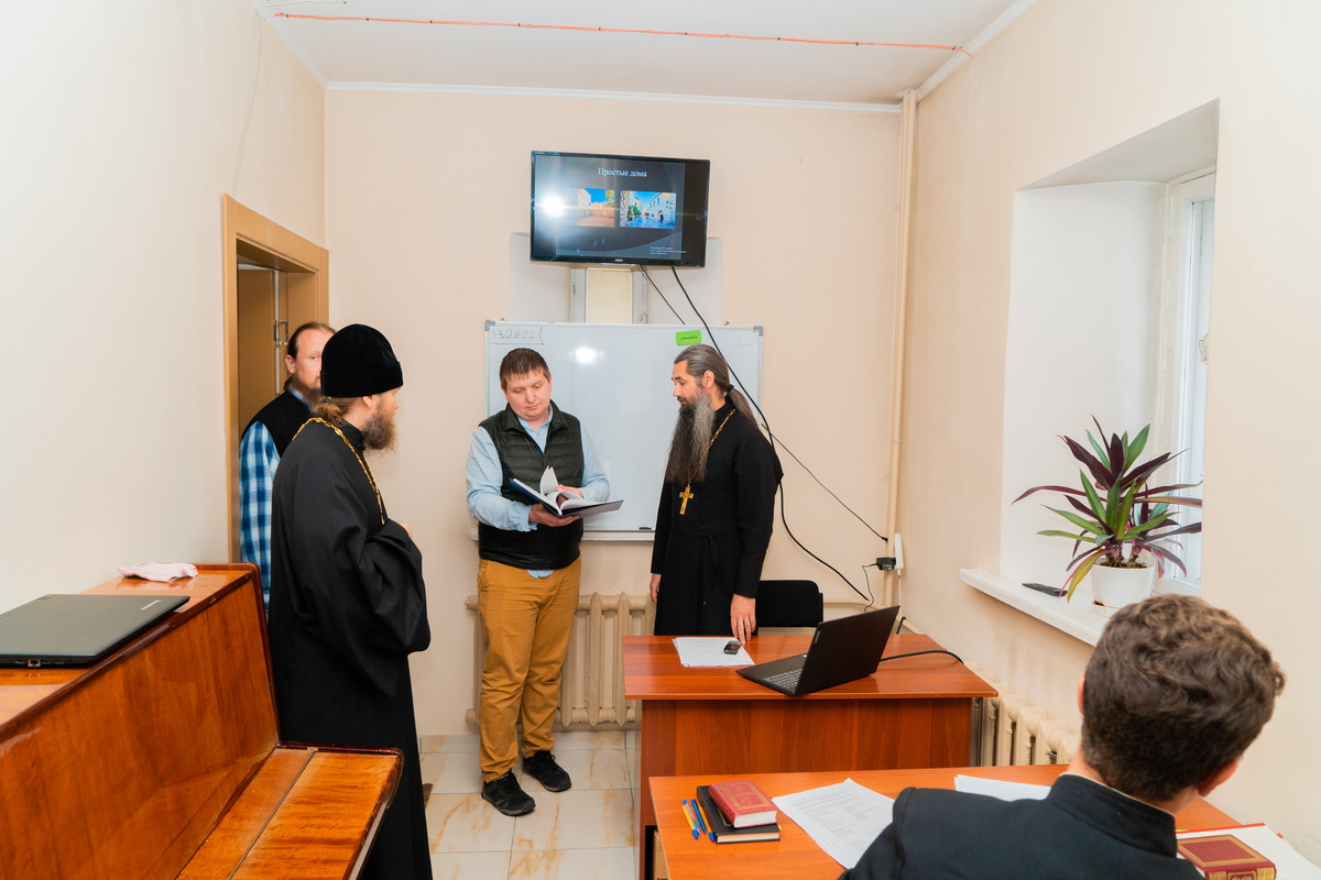 Комиссия начала знакомство с материально-технической базой семинарии, нормативной и учебно-методической документацией, работой подразделений семинарии, организацией и обеспечением научного, учебного и воспитательного процессов.