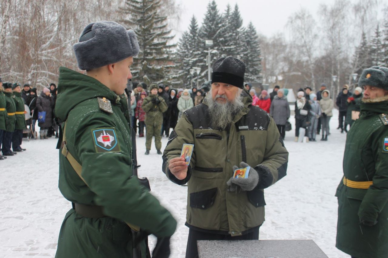 25 декабря 2022 года руководитель отдела по Взаимодействию с Вооруженными силами и правоохранительными органами Барнаульской епархии протоиерей Андрей Ушаков принял участие в воинском ритуале приведения к Присяге новобра