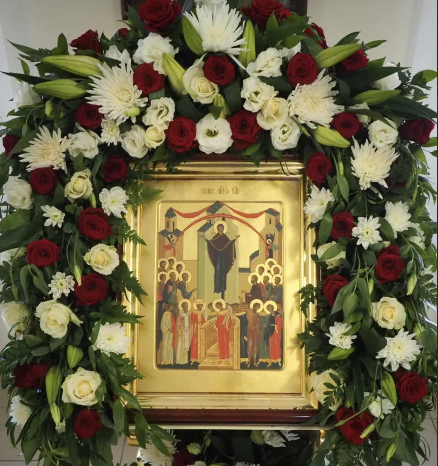 При совершении полиелея, самой торжественной части богослужения, митрополит Сергий совершил полное каждение храма при попеременном пении хорами и духовенством величания Божией Матери: «Величаем Тя, Пресвятая Дево и чтим Покров Твой святый: Тя бо виде святый Андрей на воздусе, за ны Христу молящуюся».