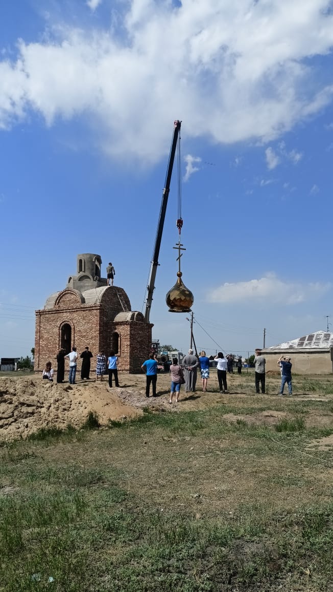В 2020 году были выложены стены часовни, в этом году достроили колокольню, а сегодня установлен купол с крестом.