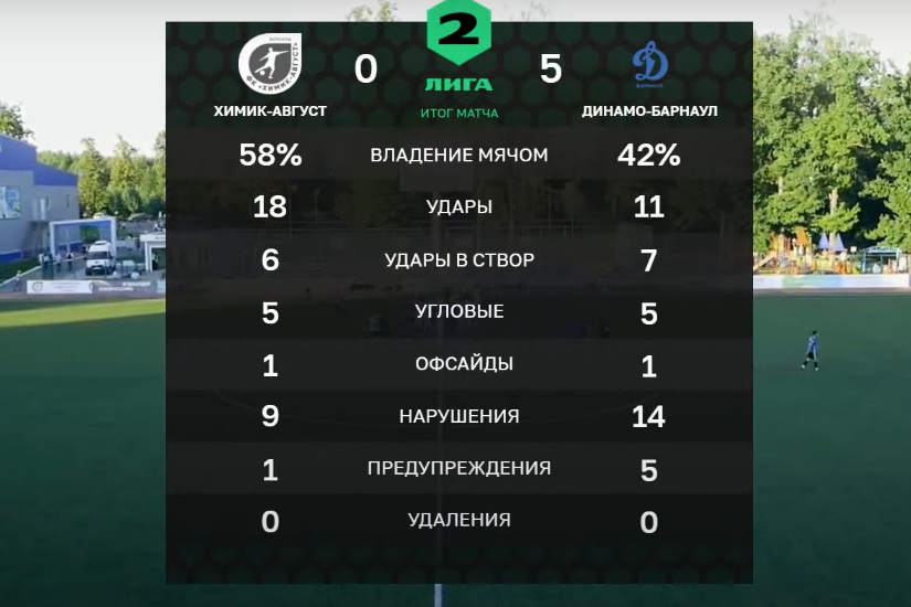 Футболисты «Динамо-Барнаул» одержали первую победу во Второй лиге первенства России в сезоне 2022-23 годов. В выездном матче динамовцы крупно обыграли «Химик-Август» со счетом 5:0. Дубль на счету новичка команды Дмитрия Бакая. По голу на свой счет записали Иван Житников, Михаил Осипов и Владимир Завьялов.