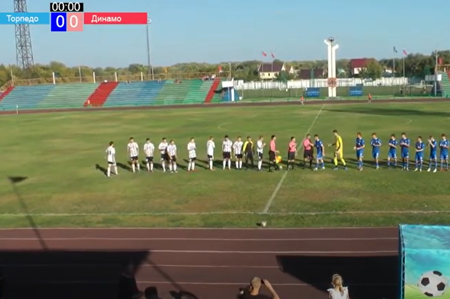 На матч с торпедовцами наша команда вышла в таком составе: Эдуард Гаценбиллер, Иван Галузин, Родион Максимов, Антон Шадура, Андрей Жигалов, Артем Безденежных, Александр Бричеев, Артур Сальников, Кирилл Седаш, Владислав Шефер и Иван Ельников. В резерве оставались Михаил Кулиш, Савелий Тетерин, Даниил Гаппель, Иван Чучалин, Никита Епонешников, Илья Беспалов и Виктор Руф. В таком составе молодые динамовцы играли в первый раз. Но начали они этот матч совсем неплохо и уже к четвертой минуте подали у ворот «Торпедо» два угловых удара подряд. Однако уже к десятой минуте положение на поле выровнялось и торпедовец Владимир Бенедиктов отметился ударом в штангу ворот «Динамо». В ответной контратаке с правого фланга динамовец Антон Шадура едва не поразил дальний угол ворот торпедовцев. На 12-й минуте повреждение получил Кирилл Седаш и вместо него на поле вышел Никита Епонешников. Евгений Лобков же получил желтую карточку за грубую игру, а затем такую же карточку на 23-й минуте судья матча выдал и Валерию Велигуре. Через шесть минут был неплохой момент у Александра Бричеева, но он пробил слабо, и вратарь мяч взял.