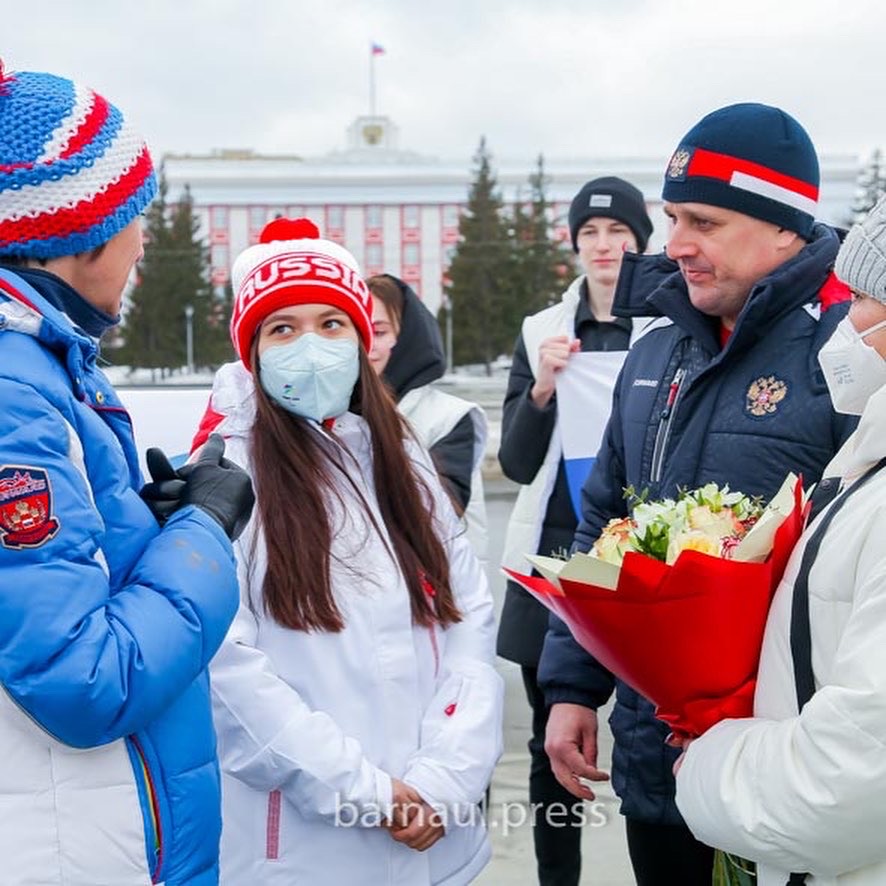 Также горнолыжницу встретила заслуженный мастер спорта по лыжным гонкам среди спортсменов с нарушением зрения, Паралимпийская чемпионка, председатель комитета по спорту, культуре и молодежной политике Алтайского краевого Заксобрания Татьяна Ильюченко.