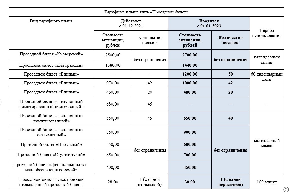 С 1 января 2023 года в городском транспорте функционирует 13 тарифных планов.