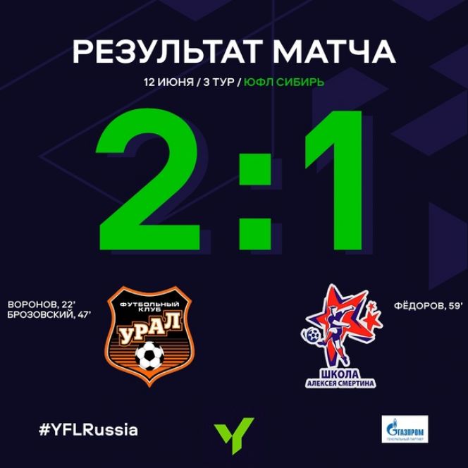 12 июня в третьем туре Юношеской футбольной лиги футболисты СШОР Алексея Смертина первый раз сыграли в гостях. В Екатеринбурге «Алтай» встречался с командой Уральской футбольной академии (УрФА), которая в первых двух турах одержала две победы.
