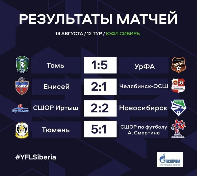 19 августа сыграны четыре матча в первенстве ЮФЛ-Сибирь. Коротко о результатах.