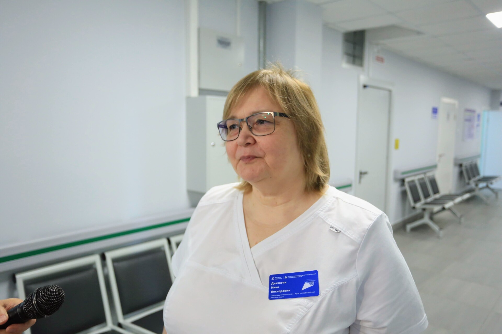"Реабилитация в поликлинике переросла из отдельных процедур в комплексное лечение. Раньше для ее прохождения мы направляли пациентов в другие медицинские учреждения и срок ожидания составлял до трех месяцев. Сейчас же он заметно сократился. Свое собственное отделение обеспечивает своевременность реабилитации", – поясняет завотделением Инна Дьячкова.Завотделением реабилитации Инна Дьячкова / Фото: amic.ru / Екатерина Смолихина