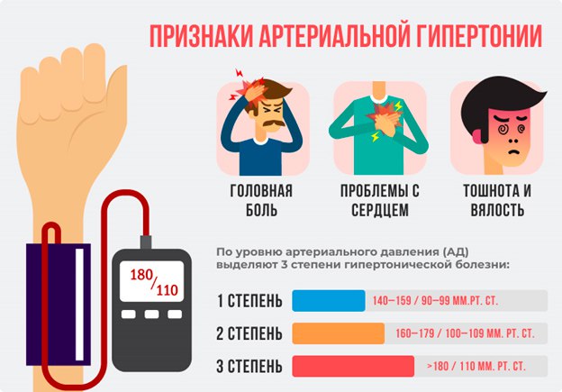 Как распознать артериальную гипертонию? Артериальная гипертония - широко распространенное в мире заболевание. Повышение уровня артериального давления до уровня 140/90 - основное проявление артериальной гипертонии. При этом однократное повышение артериального давления после эмоционального перенапряжения, тяжелой физической работы и некоторых других воздействий еще не означает, что развилась артериальная гипертония. Только при устойчивом и продолжительном повышении артериального давления врачи говорят о заболевании артериальной гипертонией. Признаки артериальной гипертонии: Артериальное давление характеризуется двумя показателями: Верхнее (систолическое) давление определяется усилием, с которым при сокращении сердца кровь давит на стенки крупных артерий. Нижнее (диастолическое) артериальное давление соответствует расслаблению сердца, когда напор крови внутри артерий уменьшается. О наличии артериальной гипертонии свидетельствует уровень артериального давления более 140/90 мм рт.ст. - эти пределы применимы ко взрослым людям обоих полов. У большинства людей (90-95%) артериальная гипертония является первичным заболеванием, которое получило в нашей стране название «гипертоническая болезнь», а за рубежом именуется «эссенциальной гипертензией». Важная роль в развитии гипертонической болезни отводится перенапряжению основных нервных процессов. Длительное повышение артериального давления в результате сложных изменений в организме приводит к нарушению регуляции работы сердца и повышению толщины гладкой мускулатуры сосудов, их спазму, что в свою очередь, ведет к нарушению питания таких важных органов как мозг, сердце и почки. По уровню артериального давления (АД) выделяют 3 степени гипертонической болезни: 1 степень (мягкая гипертония) - АД 140-159 / 90-99 мм. рт. ст. 2 степень (умеренная) - АД 160-179 / 100-109 мм. рт. ст. 3 степень (тяжелая) - АД равное или превышающее 180/110 мм. рт. ст. Нередко при 1 и 2 степени гипертонической болезни пациенты недооценивают серьезность заболевания. 1 степень гипертонической болезни, именуемая также «мягкой» формой, отнюдь не является безобидной: ею страдает около 70% пациентов и именно у таких людей риск развития мозговых инсультов увеличивается в 2-4 раза по сравнению с риском у лиц с нормальным артериальным давлением. Помимо гипертонической болезни у некоторых людей артериальная гипертония является следствием заболевания ряда органов. Другими словами, повышение артериального давления - вторичное проявление на фоне изначального поражения почек (например, при их воспалении), артерий, кровоснабжающих почки (при их сужении), а также при расстройстве функций некоторых эндокринных органов (надпочечников, щитовидной железы). Такая форма артериальной гипертонии носит название симптоматической или вторичной. Выявление истинной причины заболевания и правильное лечение может в таких случаях привести к полному выздоровлению и нормализации артериального давления.