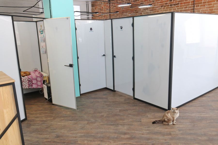 Уютно и по-домашнемуЗайдя в клинику, погружаешься в светлую и уютную атмосферу, как дома. В ней есть три постоянных обитателя, которые проживают здесь уже длительное время. 16-летняя кошка-долгожительница постоянно сидит в клетке.