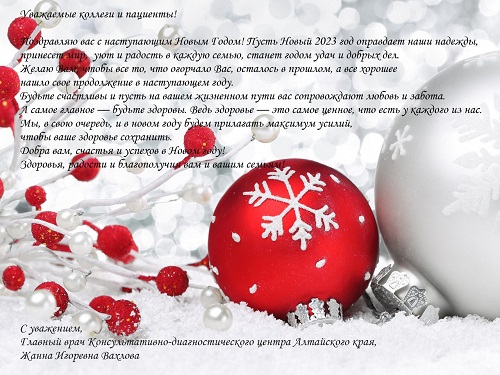Поздравление главного врача Консультативно-диагностического центра Жанны Вахловой с наступающим Новым годом