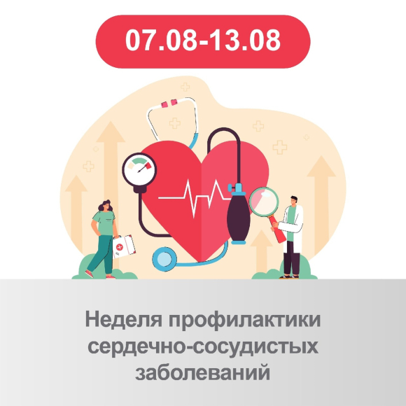 С 7 по 13 августа 2023 года проходит Неделя профилактики сердечно-сосудистых заболеваний