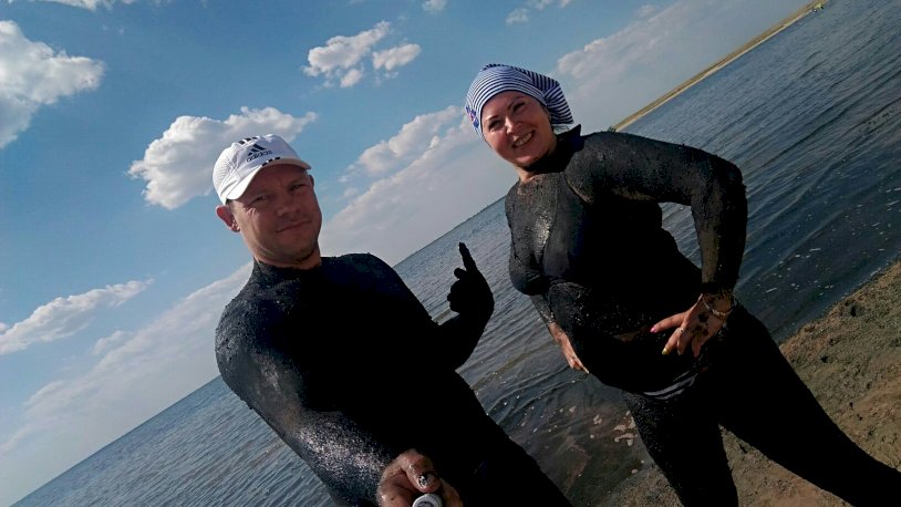 Некоторые отдыхающие по полдня проводят в воде и часами сидят, обмазавшись с головы до ног лечебными грязями.