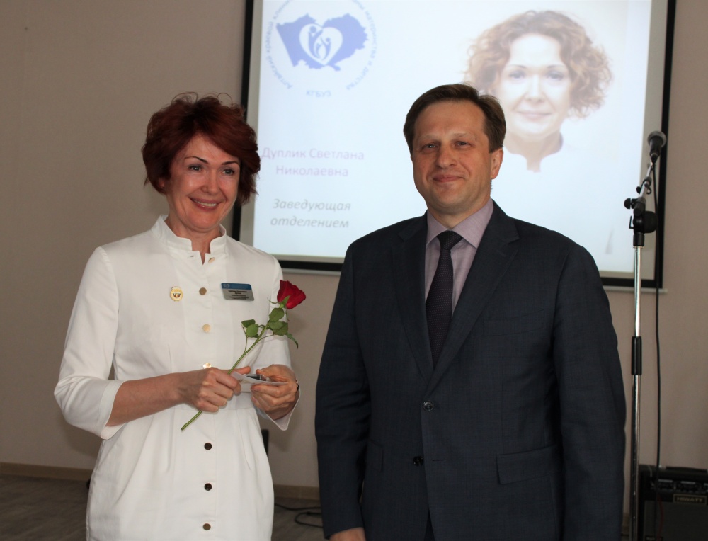 Накануне Дня медицинского работника министр здравоохранения Алтайского края Дмитрий Попов вручил нагрудный знак «Отличник здравоохранения» Светлане Дуплик.