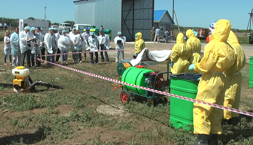 По легенде учений, в одном из хозяйств произошла вспышка африканской чумы свиней. В этих учениях задействованы специалисты 18 районов. Сразу две зоны края – Алейская и Рубцовская. Более 50 человек, 20 единиц специальной техники. На территории России за этот год уже было зарегистрировано 26 очагов африканской чумы свиней, в том числе и в Омской области. А в Казахстане непростая ситуация с ящуром крупно-рогатого скота.